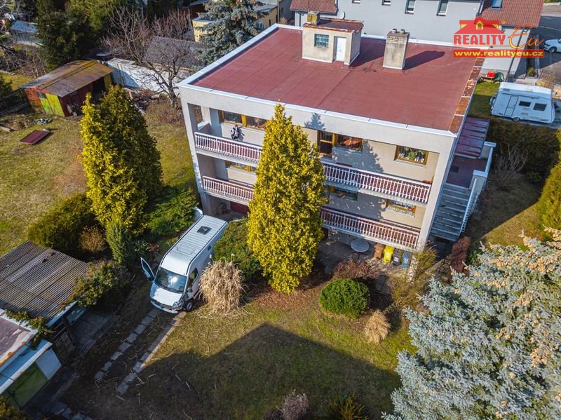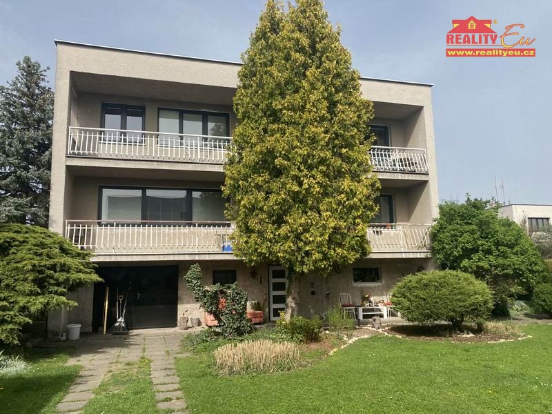 Do prodeje uveřejňujeme zděný rodinný dům z r. 1986 vhodný pro bydlení více generací naráz. Nemovitost je umístěna v příjemné vilové čtvrti s výbornou dostupností na výjezd z dálnic. V současnosti se jedná o běžící investiční projekt – všechny 3 jednotky jsou řádně pronajaty. Dalším nesporným bonusem je vzhledem k velikosti pozemku 1 214 m² odsouhlasená možnost výstavby dalšího domu na zahradě. V dané chvíli je ve stávající budově k dispozici obytný suterén v přízemí, který disponuje 2 obytnými místnostmi a soc. zázemím, kotelnou na TP a garáží. Ve 2. NP je bytová jednotka 4+1 s lodžií cca 90 m² a ve 3. NP je byt 3+1. Na zahradě stojí další samostatná garáž a kryté venkovní posezení. Objekt je napojen na městský vodovod, má vlastní zdroj vody na zalévání, kanalizace, elektřina 240/400V (každý byt má vlastní elektroměr). V komunikaci plyn. Vytápění ústřední na tuhá paliva nebo elektrokotel. Ohřev TUV el. bojlerem. Vzhledem k umístění stavby v klidné části města, s velmi dobrou dostupností, by tato investiční nemovitost mohla zaujmout zájemce s přesahem do budoucnosti.