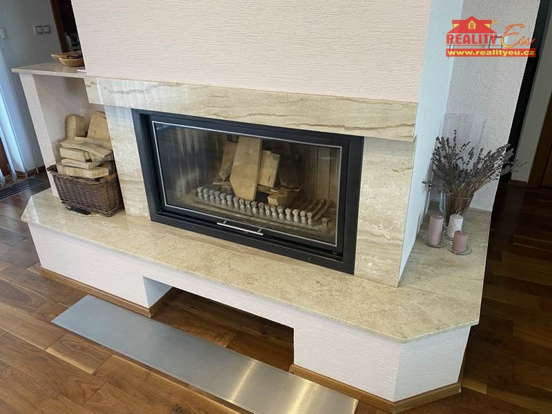 1. NP vstupní chodba propojená s větší garáží, místnost se saunou, kuchyně sloužící pro posezení na zahradě s vlastním soc. zařízením. Dále následuje prostorný obývací pokoj, jídelna a hlavní otevřená kuchyně. Vše doplňuje prádelna a oddělené wc. V místnostech byly použity velmi kvalitní obkladové materiály vhodně kombinované s dřevem. Příjemné bydlení doplňují krbová kamna.