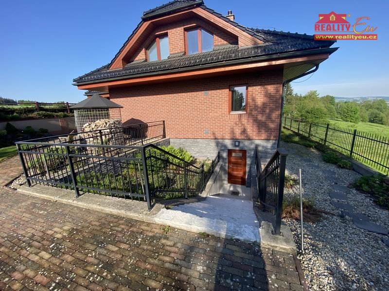 Prodej větší moderní rodinné vily z roku 2009 umístěné na základě individuálního projektu na okraji města s nádherným výhledem do kraje. Poloha domu byla vybrána vzhledem k vysokým nárokům na soukromí a vhled okolí. Rovinatý pozemek je velmi dobře přístupný z místní asfaltové komunikace s výborným spojením na dálnici D 35 Mohelnice - Olomouc. Okrasná zahrada s parkovou úpravou je velmi dobře udržována umocňuje příjemné prostředí domu. Na pozemku je dostatek parkovacích ploch i před vstupní branou. Zadní soukromá část nabízí venkovní opékání, nebo venkovní posezení pod střechou s vlastní zahradní kuchyní i soc. zázemím. Celková užitná plocha domu bez garáže přesahuje 360 m².