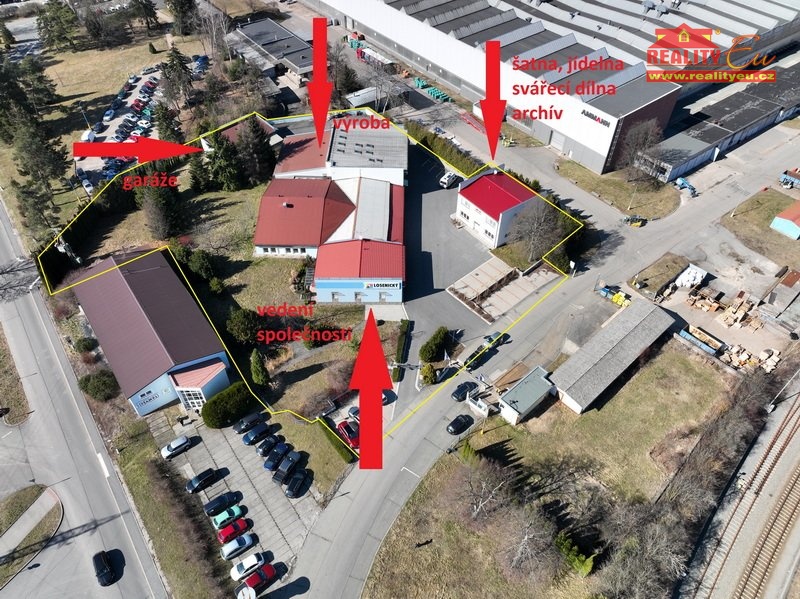 Prodej samostatného výrobního areálu umístěného průmyslové zóně Nového Města nad Metují. Soubor velmi kvalitně postavených budov (poslední rekonstrukce 2019) bez nutnosti investic sloužil jako kompletní zázemí tiskárny. Bezproblémový příjezd pro kamionovou dopravu, nadstandardní asfaltová manipulační plocha, množství samostatných vstupů do hlavní výrobní budovy nabízí velmi rozsáhlé možnosti pro výrobu v hlavní budově. Pro obsluhující personál byla kompletně vybudována samostatná klimatizovaná budova. Dané území je v Územním plánem schváleno jako OM pro funkci občanského vybavení – komerční zařízení malá a střední. Nemovitost je napojena na obecní vodu, kanalizaci, elektřinu 230/400 V. Všechny budovy disponují vlastním sociálním zařízením, jsou plně funkční s okamžitou možností zahájení provozu. Vybavení všech prostor včetně nábytku je ve střední, nebo vysoké kvalitě. Celková výměra pozemků 6 631 m². Zastavěná plocha činí 1 504 m².