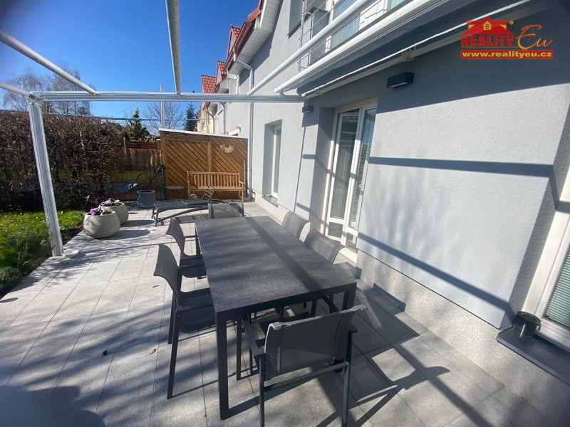 Zděný městský řadový dům s velmi udržovanou zahradou v centru obce mimo hlavní komunikace. Jedná se o standardní, uživatelsky velmi příjemný rodinný dům z roku 2003. Nemovitost je ihned k nastěhování. Řadovka je výborně přístupná z klidné, místní asfaltové komunikace z obou stran. Dispozice: 1.NP vstupní předsíň, vpravo garáž, větší obývací pokoj, otevřená jídelna propojená s kuchyní, výstup přes krytou terasu na okrasnou zahradu. Dále samostatné wc, prádelna a úklidový kout. V 2.NP tři neprůchozí pokoje (ložnice, dva dětské pokoje), malá pracovna, velká koupelna, další wc a šatna. Samozřejmostí moderní domácnosti, jsou 2 umyvadla, bidet, klimatizace apod. Možnost další rozšíření do podkroví, kde je dostatečná podchodová výška pro vybudování ateliéru, nebo klidné studovny. Ohřev teplé vody plynem, vytápění je zajištěno klimatizací a plynovým kotlem. Udržovaná kuchyně, koupelna, podlahové krytiny, venkovní terasa s posezením, vše zpříjemňuje bydlení na vyhledávané adrese. Připojeno na obecní vodovod a kanalizaci, el. 230/400 V a plyn. Na velmi pečlivě udržované zahradě je kopaná studna na užitkovou vodu, rozvedená závlaha i robotická sekačka. Okna plastová. Celková výměra pozemku 407 m². Objekt je vhodný pro rodiny hledající okamžité bydlení s příznivými provozními náklady a výbornou dostupností do Poděbrad, nebo do Prahy. S hypotečním úvěrem pomůžeme.
