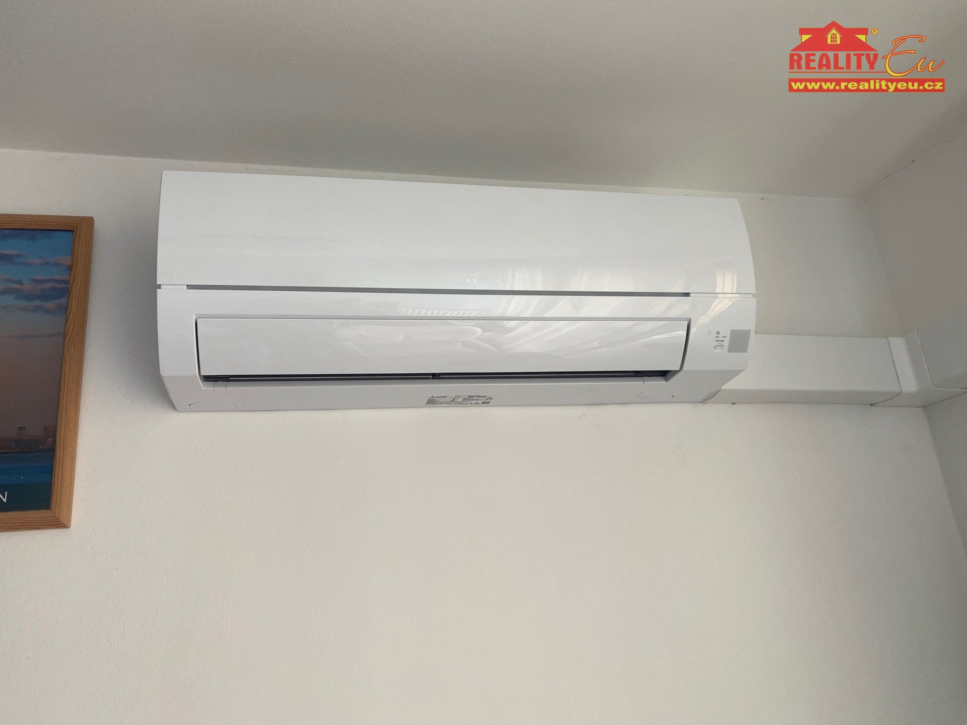 Obývací pokoj s kuchyňským koutem je vybaven udržovanou kuchyňskou linkou se spotřebiči. Byt je klimatizovaný (tepelné čerpadlo v záruce) s možností přitápění, což zajišťuje celoroční komfort. Celkově je byt ve velmi dobrém a opečovávaném stavu bez nutnosti zásadních investic. A protože je nemovitost prodávaná včetně většiny zařízení je připravena ihned k nastěhování nebo pronájmu. Příjemné nízké jsou i měsíční náklady ve výši 3 326,- kč + el. . Bytový dům disponuje vlastní nízkonákladovou plynovou kotelnou.