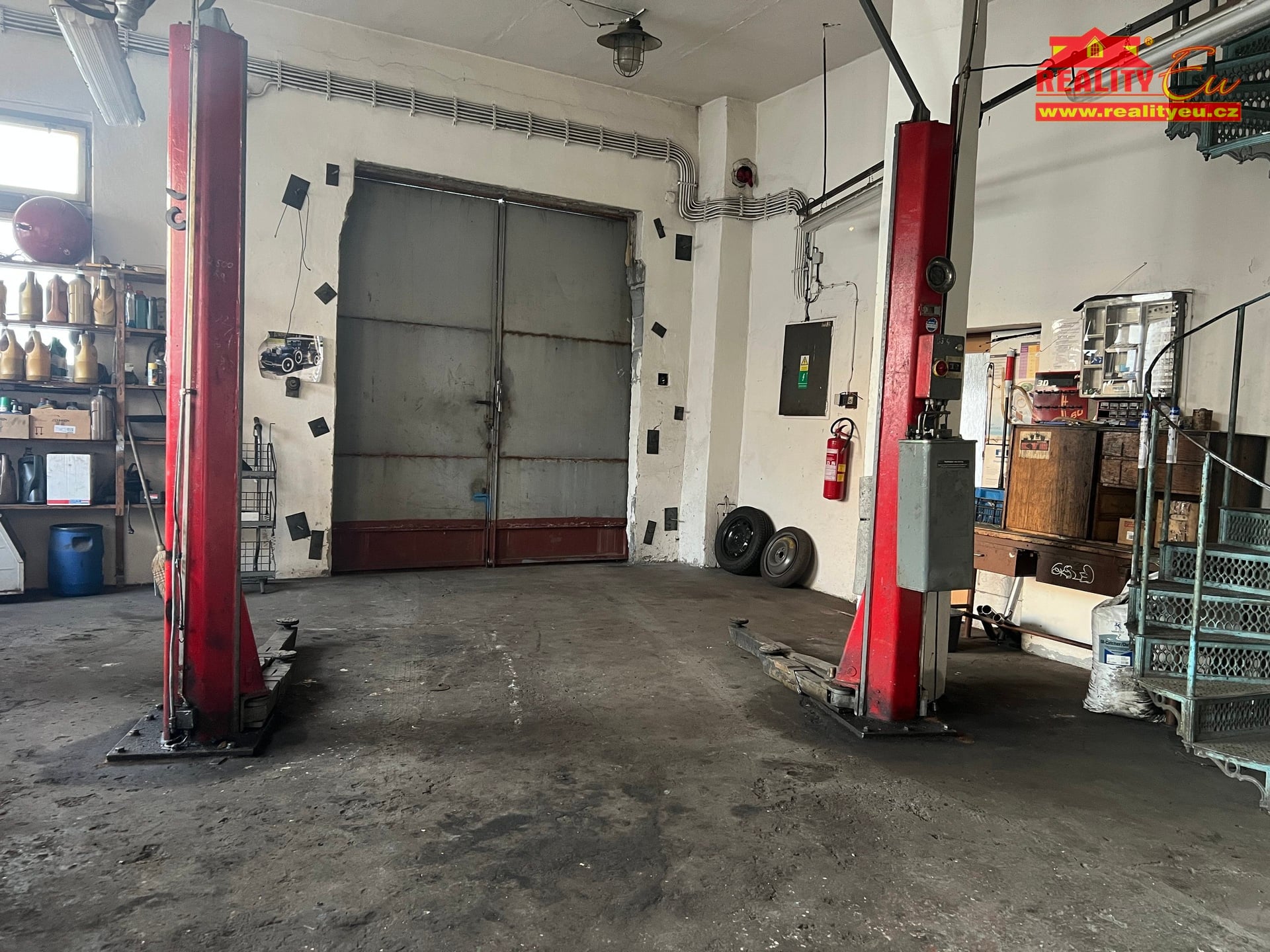 V přízemí budovy se nachází plně funkční autoservis o ploše 139 m² se třemi stáními, z toho jedno servisní stání je vybaveno montážní jámou. Vedle autoservisu je další prostor vyhrazený pro služby pneuservisu se samostatným vjezdem a dalším zvedákem (výměra 61 m²). Společné zázemí tvoří šatna, kuchyňka, toaleta, kancelář, kotelna a sklady. Přilehlé nádvoří před a za objektem je zpevněné asfaltem v kombinaci s betonovými panely a slouží jako odstavná nebo manipulační plocha. Vlastník svou dlouholetou autoservisní činnost ukončil a prostory jsou pronajaty s výpovědní lhůtou 3 měsíců.