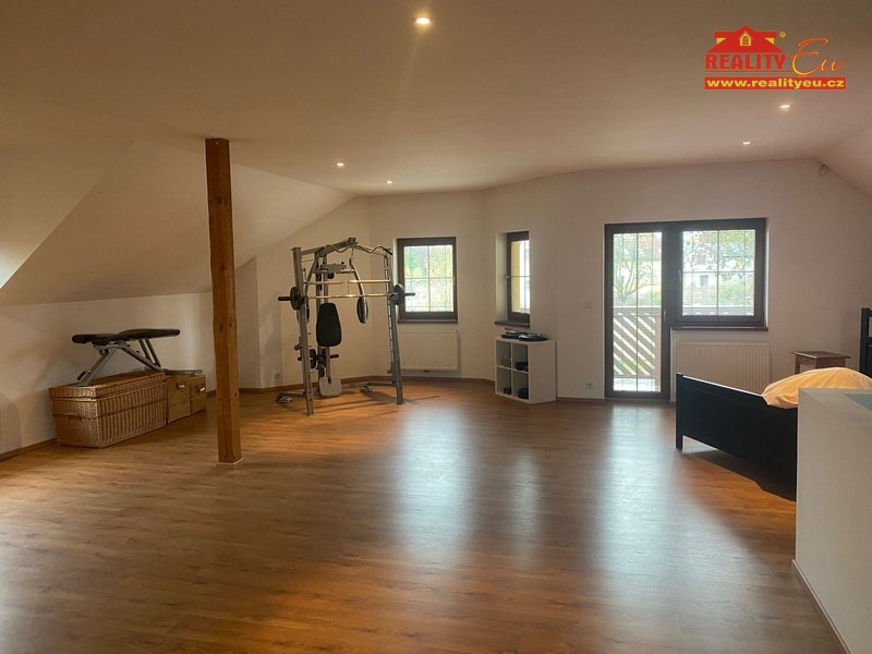 1.NP vstupní chodba vede vedle garáže, obývací pokoj propojený s jídelnou a kuchyňským koutem vybaveným vestavnými spotřebiči. Dále koupelna s vanou, wc a technické zázemí. Vstup do otevřeného podkroví po kvalitním dřevěném schodišti. V 2.NP je umístěna otevřená prosvětlená ložnice s výstupem na lodžií a fitnes koutek. Samozřejmostí je příprava pro případné rozdělení daného prostoru na více místností.