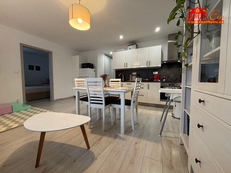 Byt prošel celkovou modernizací – nové rozvody, kuchyň, podlahy a koupelna. Výsledkem je nadčasový interiér bez nutnosti dalších investic.