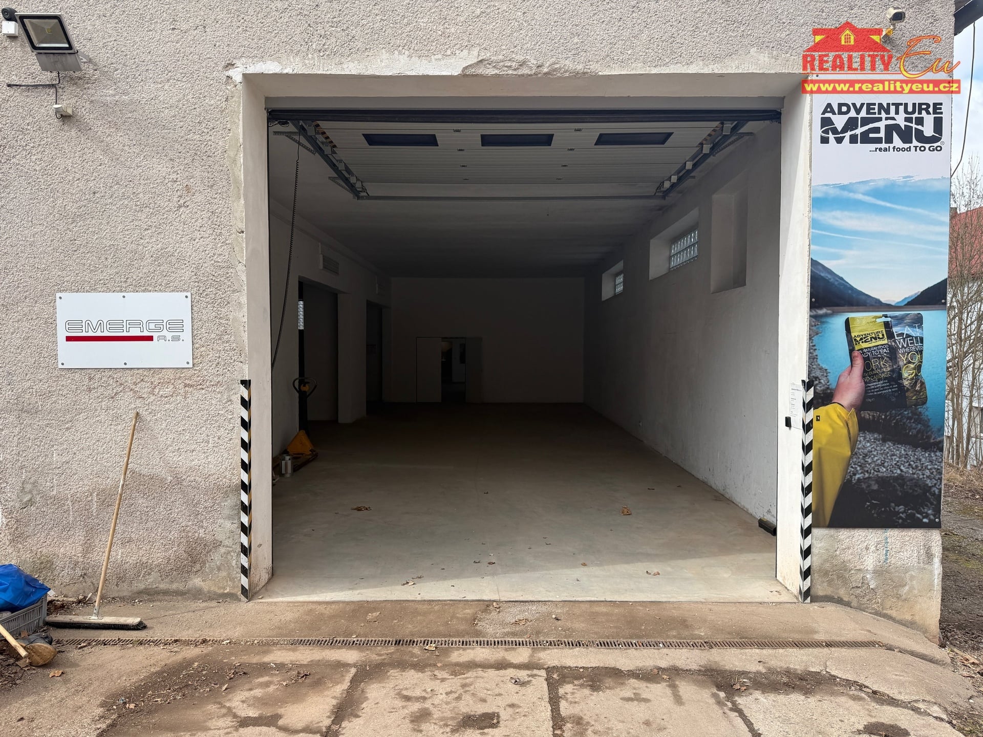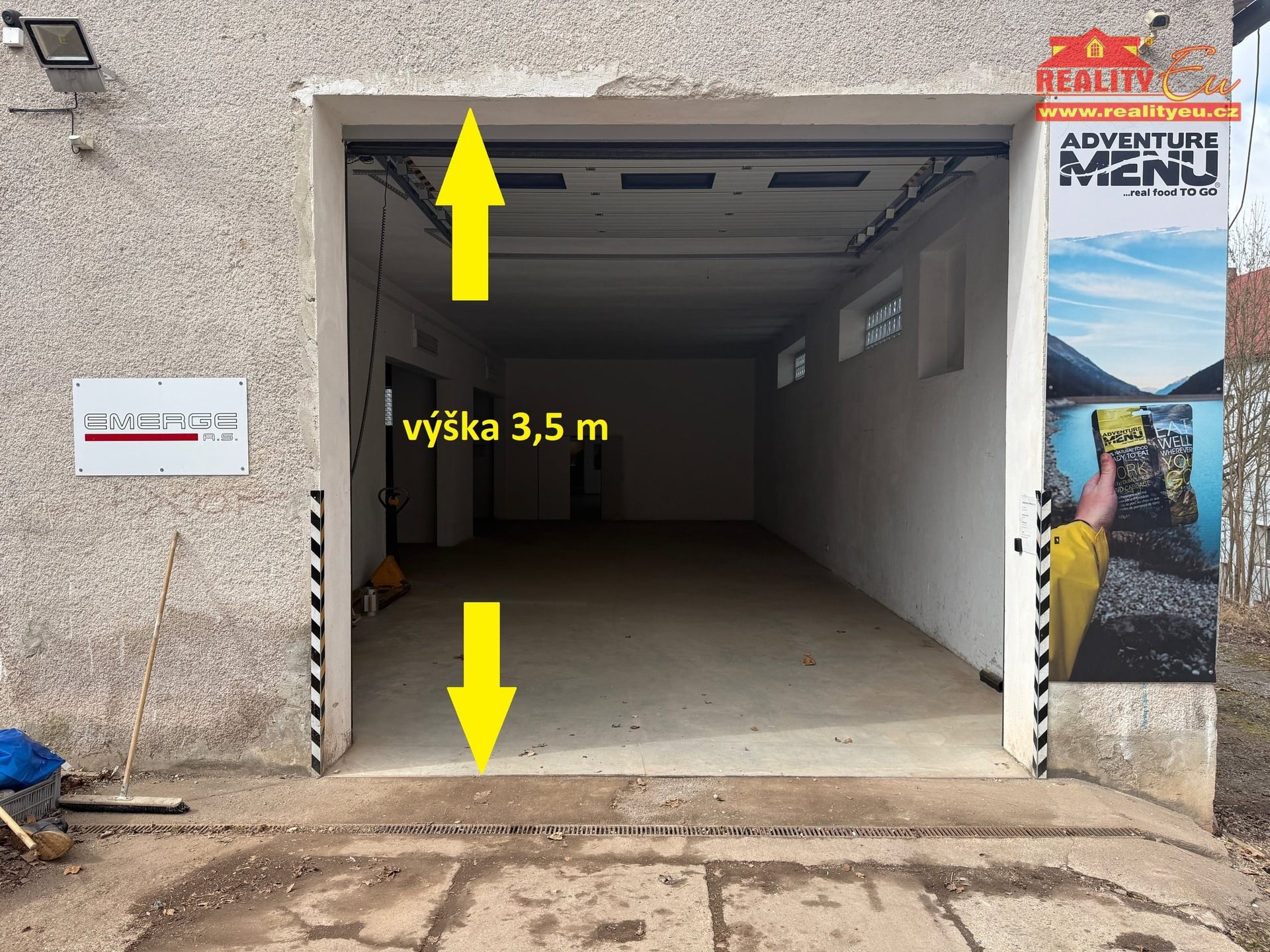 Dvoje dálkově ovládaná garážová vrata (šířka 3,5m x výška 3,3m).