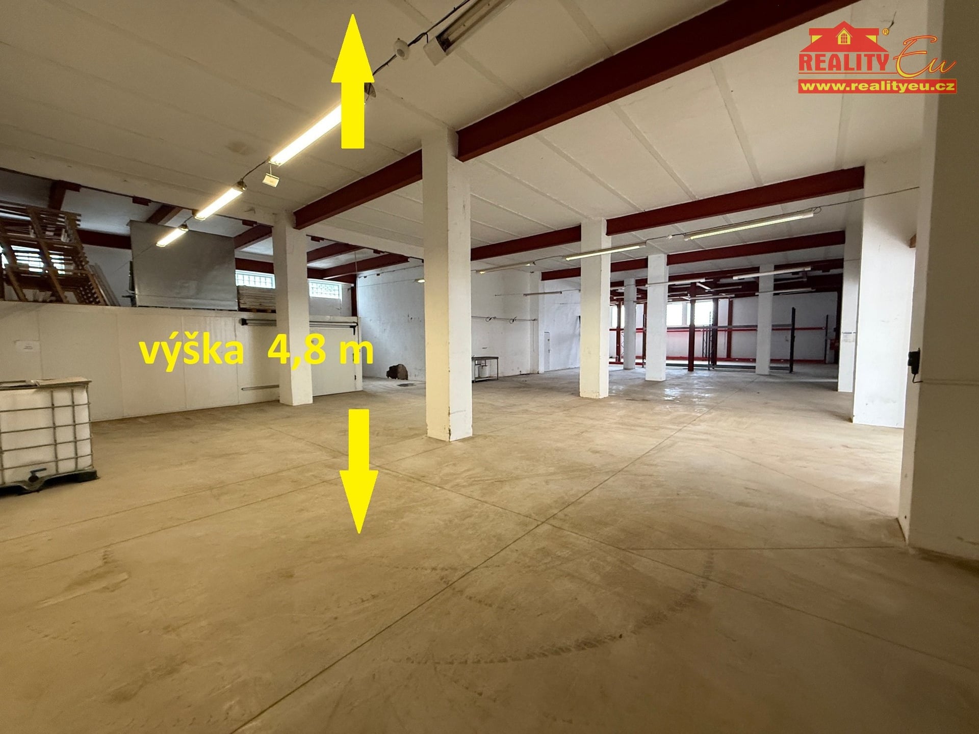 Skladová plocha 792 m² převážně s výškou stropu 4,8 m.